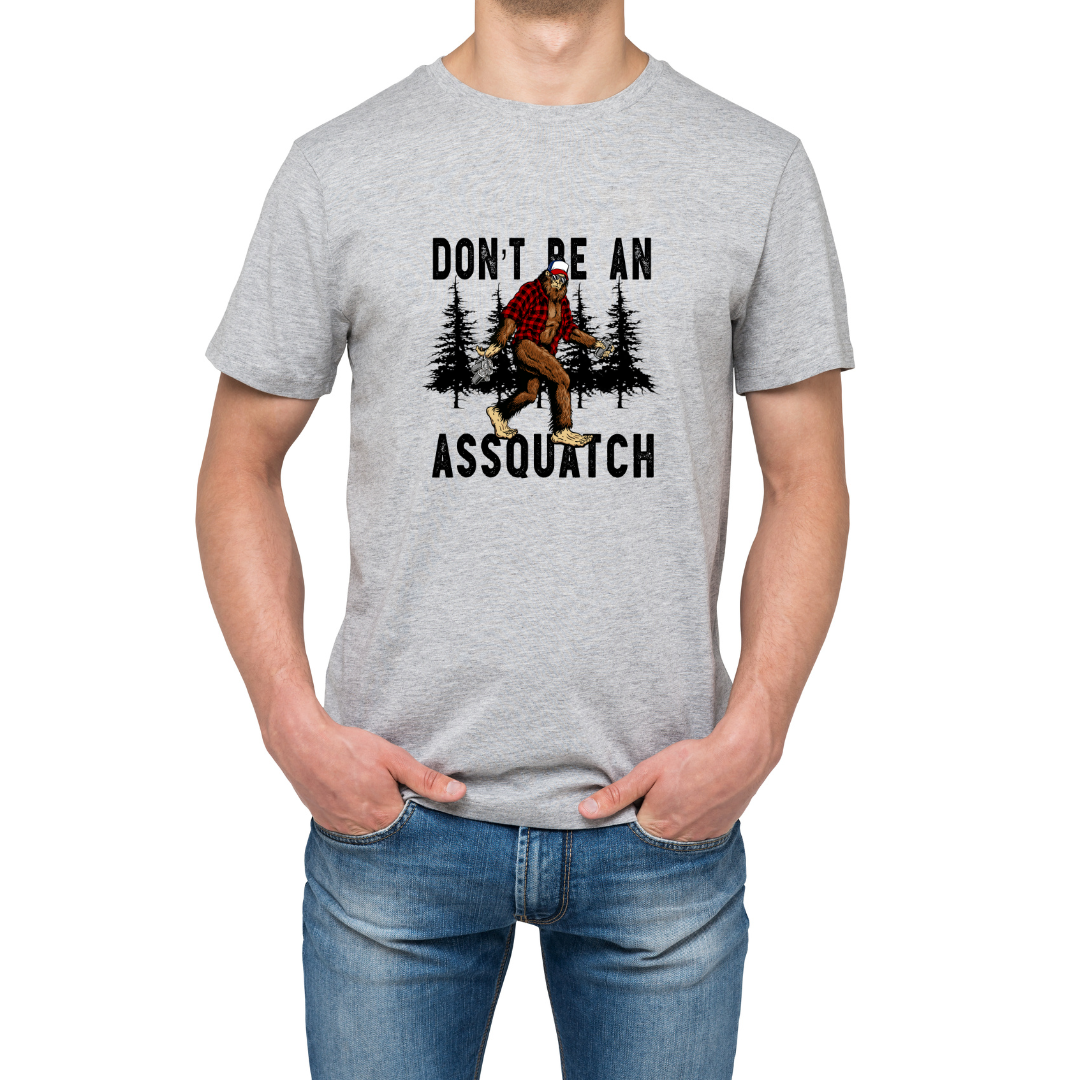 "Experience the thrill of the woods with our Don't be a Assauatch tshirt! Perfect for camping and Sasquatch enthusiasts, this shirt features a unique design that will make you stand out in the great outdoors. Don't miss out on this must-have addition to your outdoor wardrobe!"